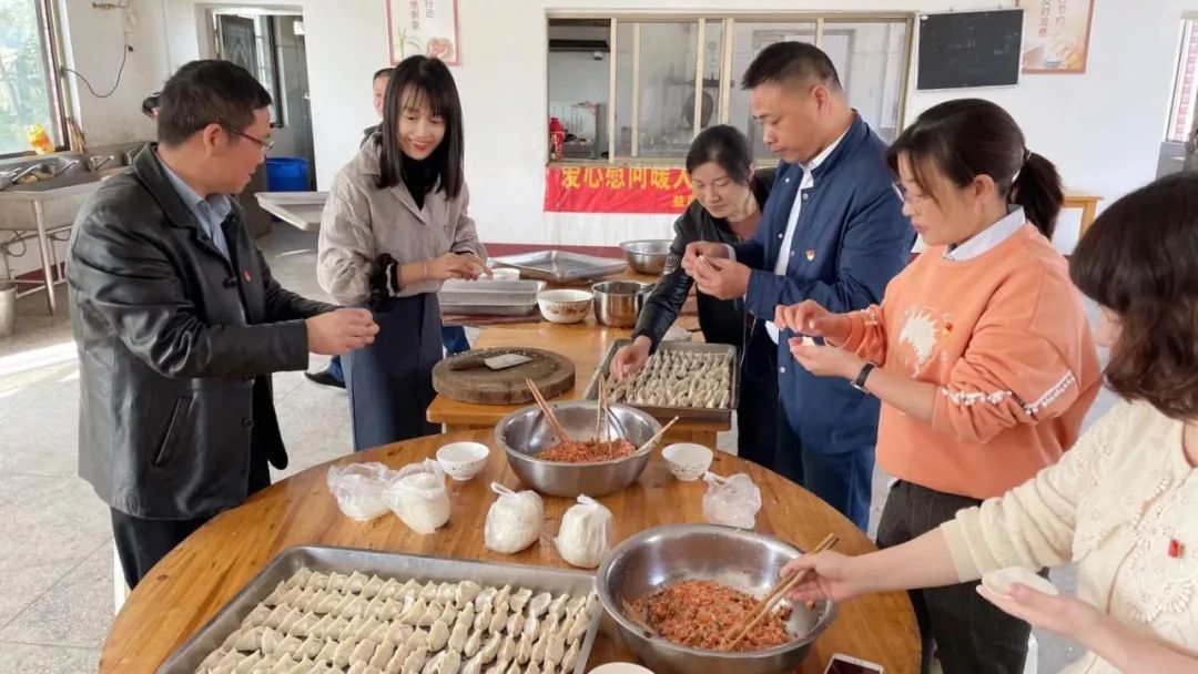 整個(gè)包餃子的過程歡聲笑語不斷,黨員同志們分工有序、配合默契,切菜、調(diào)餃子餡、包餃子一氣呵成,看到餐廳里熱鬧又歡樂的景象,敬老院的工作人員趕緊拿出相機(jī)記錄這溫馨的時(shí)刻。