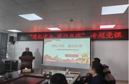 11月21日,集團(tuán)公司黨委委員、副總經(jīng)理?xiàng)钗奈湟浴白窦o(jì)守法,廉潔自律--為兩型投高質(zhì)量發(fā)展鋪好清廉底色”為題,為公司全體黨員講授廉政教育專題黨課。